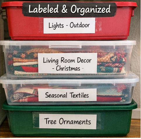 Storing Christmas decor doesn’t have to feel overwhelming. With clear categories, mindful decluttering, a few practical tricks (like wrapping your lights), and a good system of boxes and labels, you can end the season with a sense of order and peace. And if you do it while listening to your favorite music and maybe having a warm drink, it's more fun!